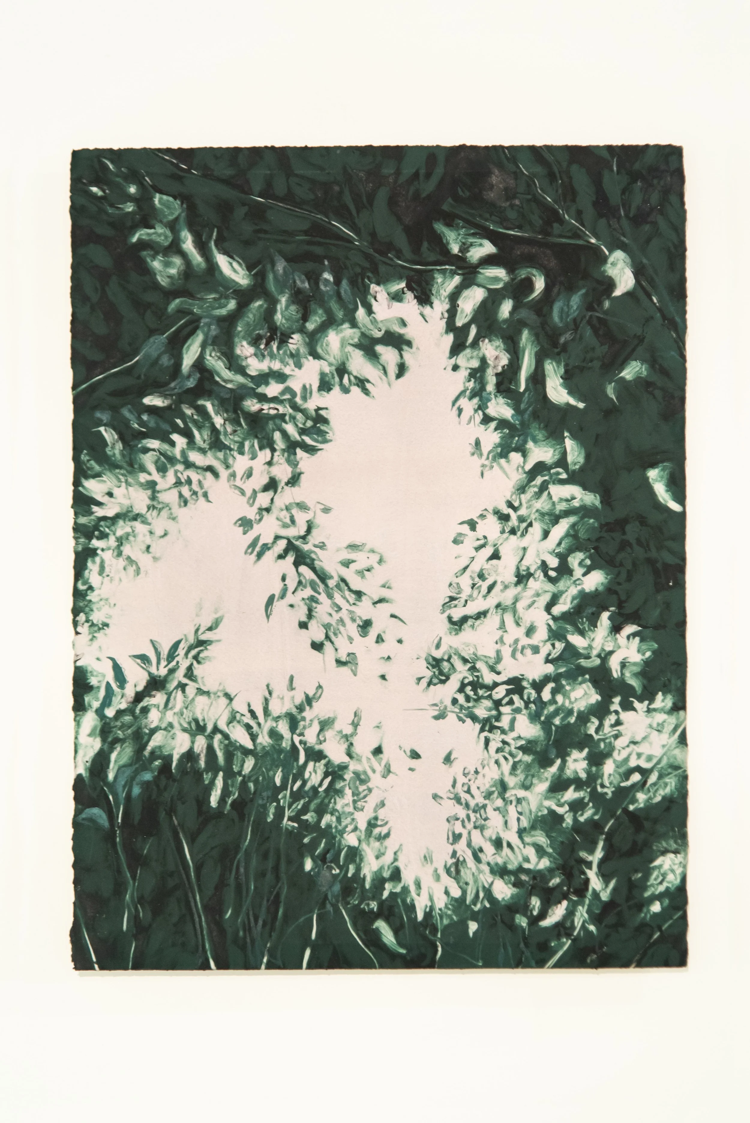 Monotype on dyed paper, hung on armature