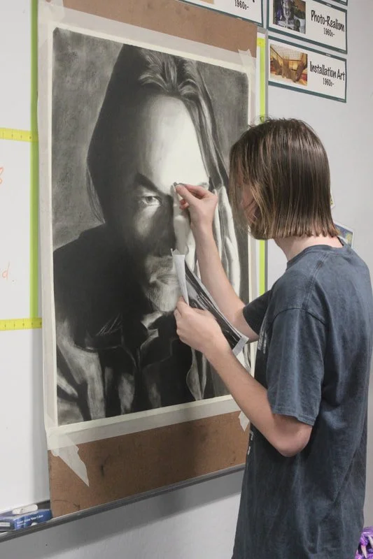 Selection of student work from University Drawing 1, Painting, and some Advanced Placement Drawing & 2-D Work
